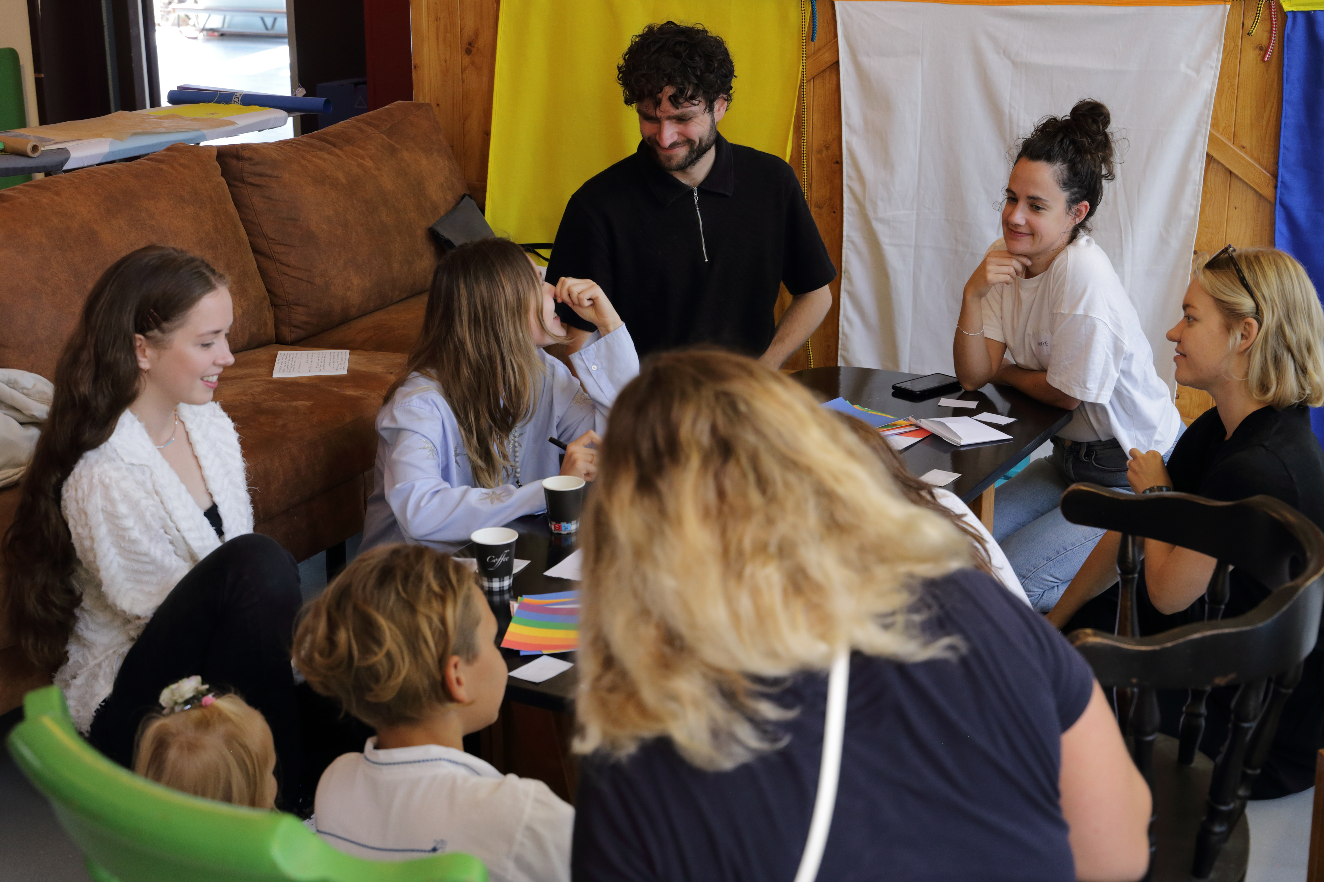 On August 18, 2022 we organised another Flag Making workshop at De Brink. Together with initiators of the first workshop, spatial and graphic designer Jack Bardwell, and other passionate volunteers for Ukrainian refugee kids. We aimed to share the workshop format to local residents to be able to continuously create visual expressions for personal emotions and narratives.